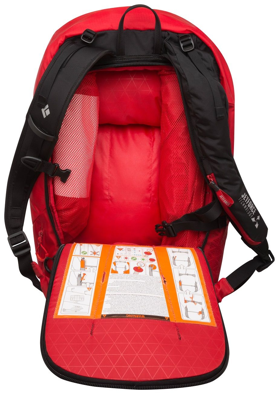 A jak vlastně revoluční JetForce technologie funguje? Vak batohu se nafukuje pomocí zabudovaného ventilátoru, který je poháněn bateriemi. Nafouknutí trvá pouhé 4 sekundy a následující 3 minuty ještě udržuje ventilátor vak maximálně nafouknutý. Tím udržuje jeho nositele na povrchu případné laviny. Po třech minutách se ale automaticky vyfoukne, aby kolem lyžařovy hlavy vytvořil vzduchovou kapsu, dojde-li náhodou k úplnému nebo částečnému zasypání lavinou. Vak je vyroben z cordury, což je velice odolný materiál, který se jen tak lehce neprotrhne.