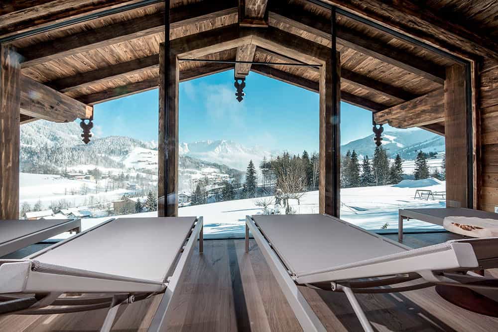 A skutečně – právě tady pocítíte, že jste součástí impozantního světa zasněžených Alp, rozprostírajících se všude kolem. Pokoje, odpočívárny i sauny jsou totiž maximálně prosklené, abyste si mohli onoho luxusu náležitě užít.