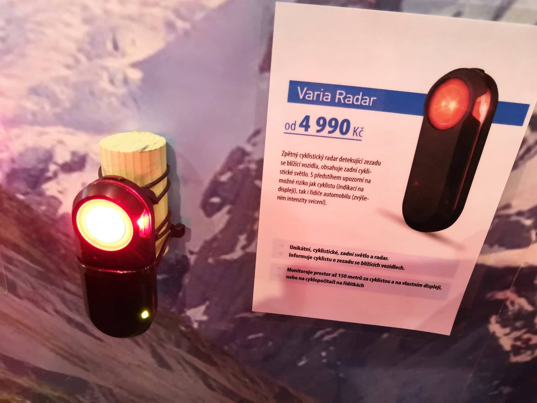 Další ostře sledovanou inovací poslední doby byla na veletrhu i radarová blikačka Garmin Varia Radar, která po spárování s kompatibilním cyklopočítačem na řídítkách upozorňuje cyklistu na zezadu se blížíce auto. A řidiče zároveň varuje intenzivnějším blikáním.